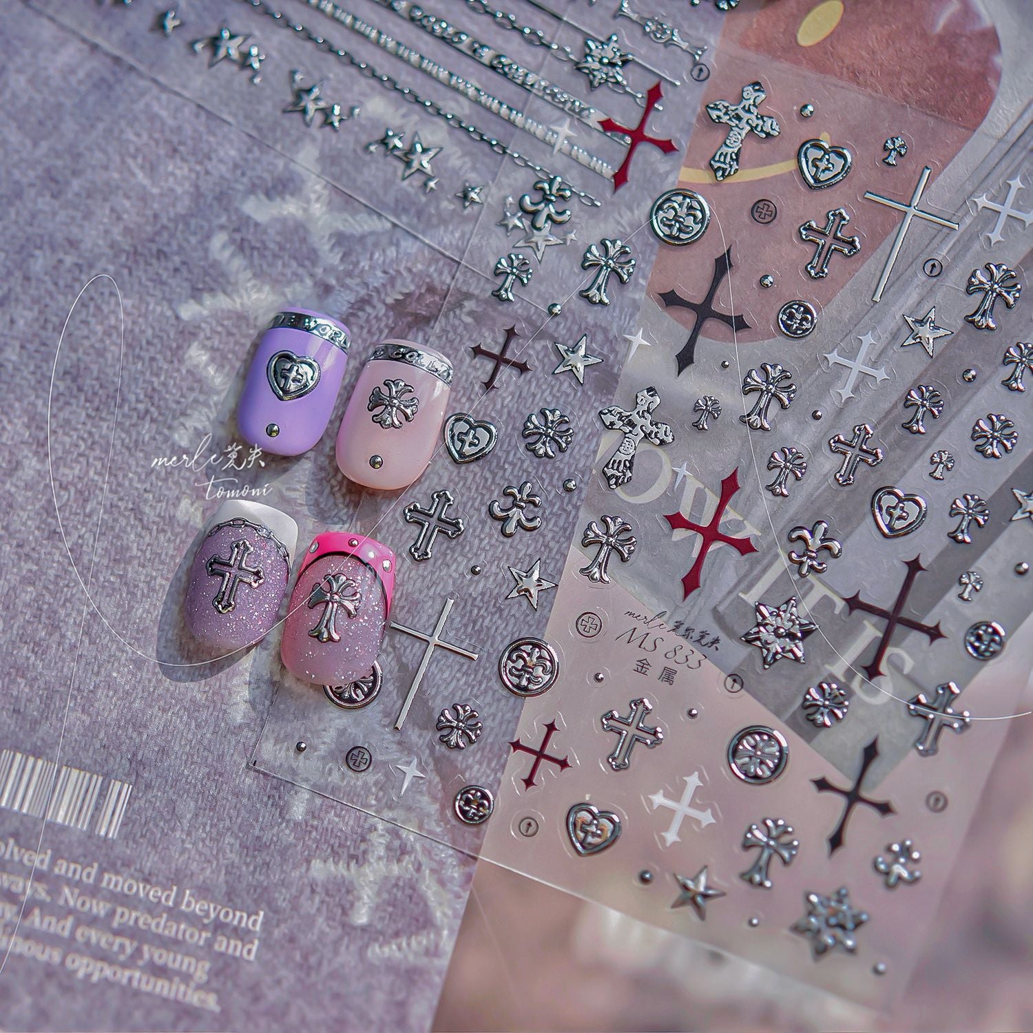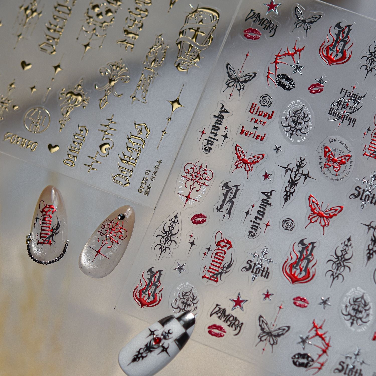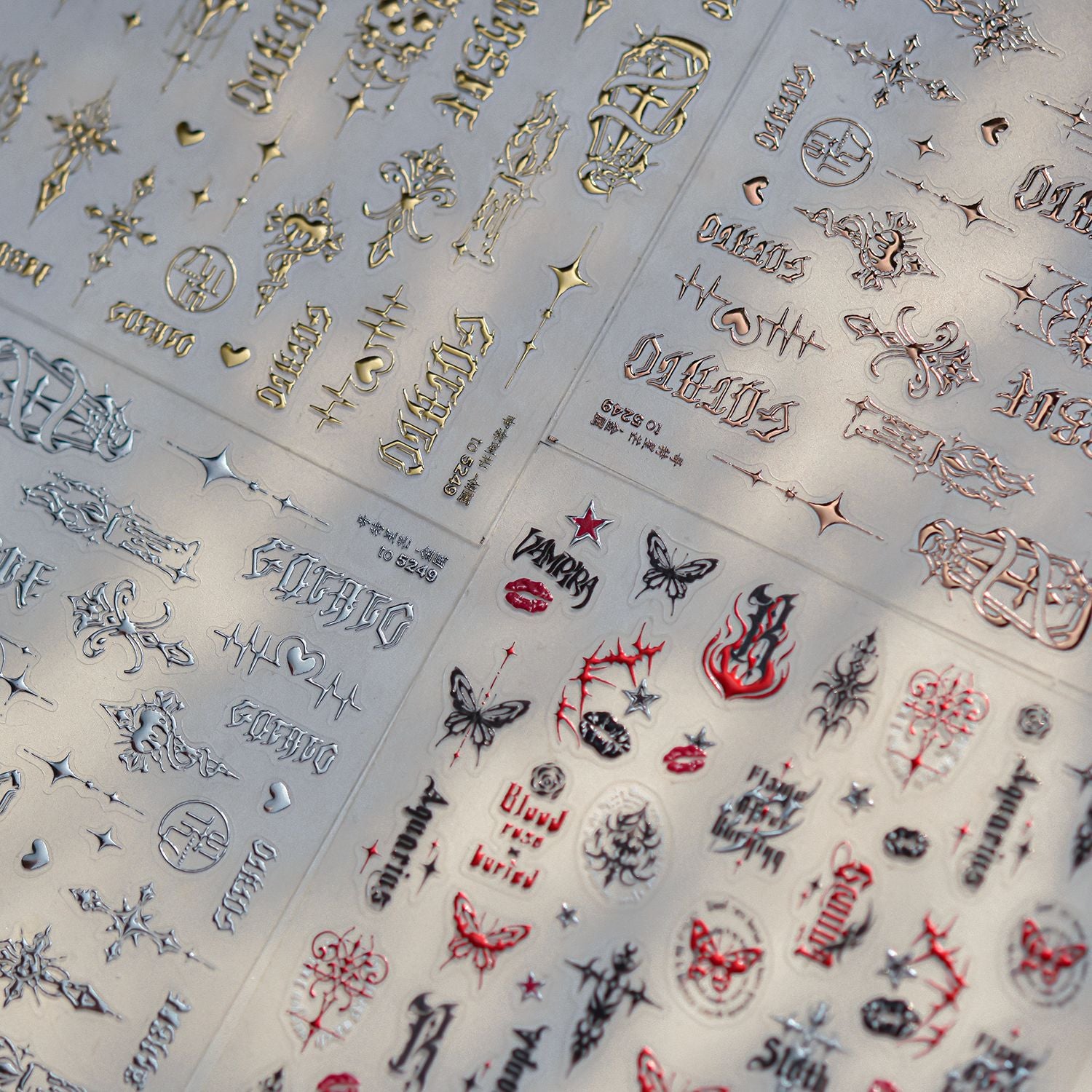 3D Stickers - Metallic Sheen Cross Snake Skull Self-Adhesive Gothic Dark Romance Decals for Nail Art Decoration