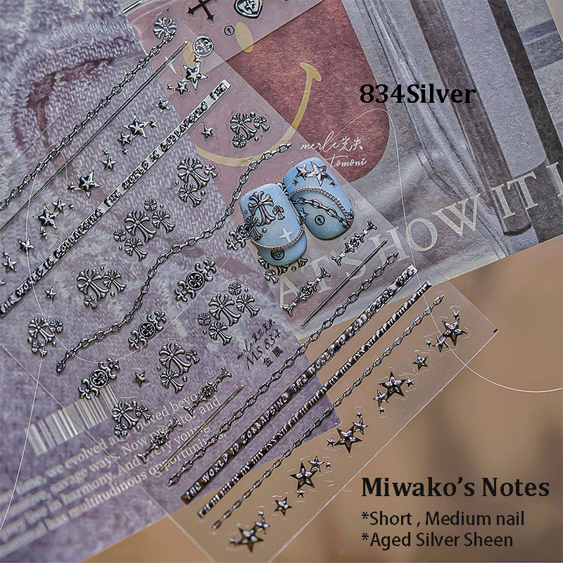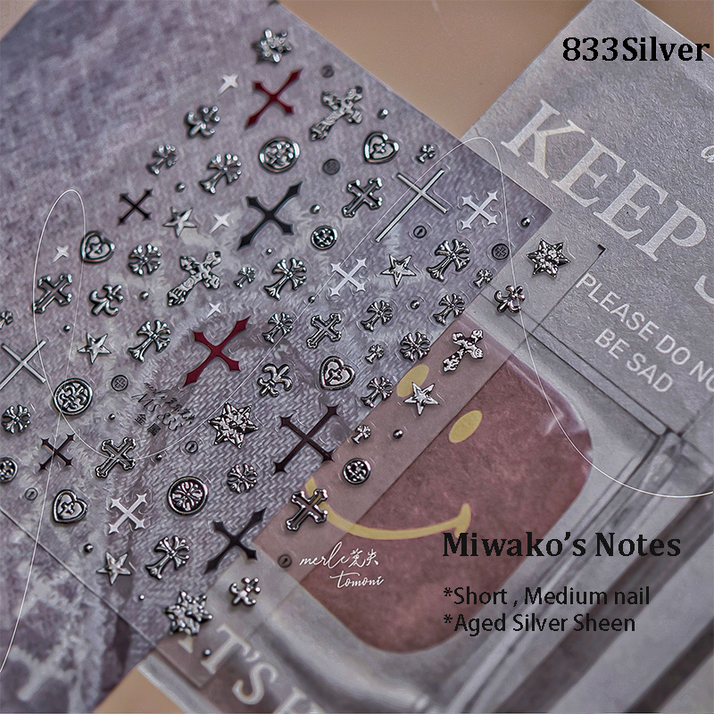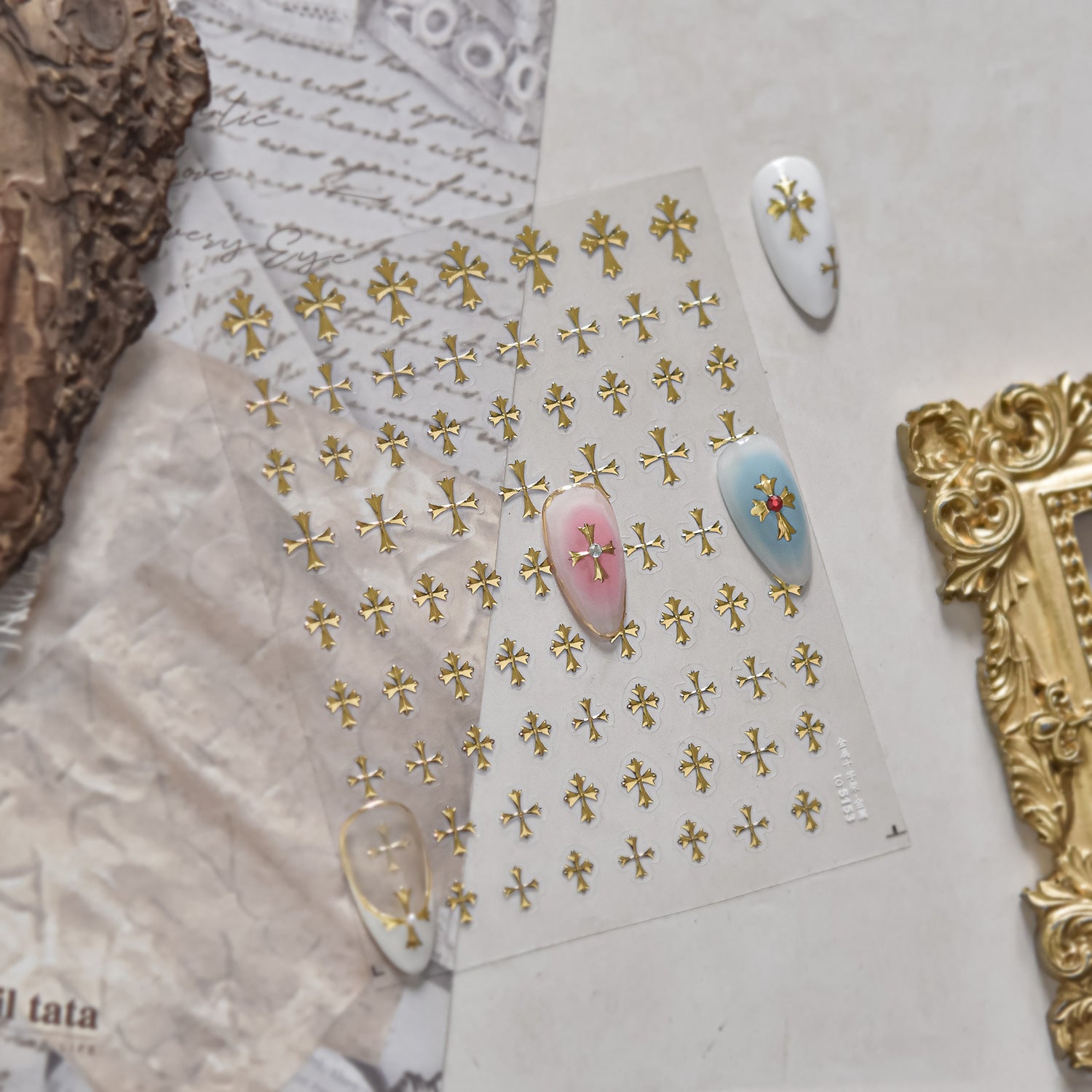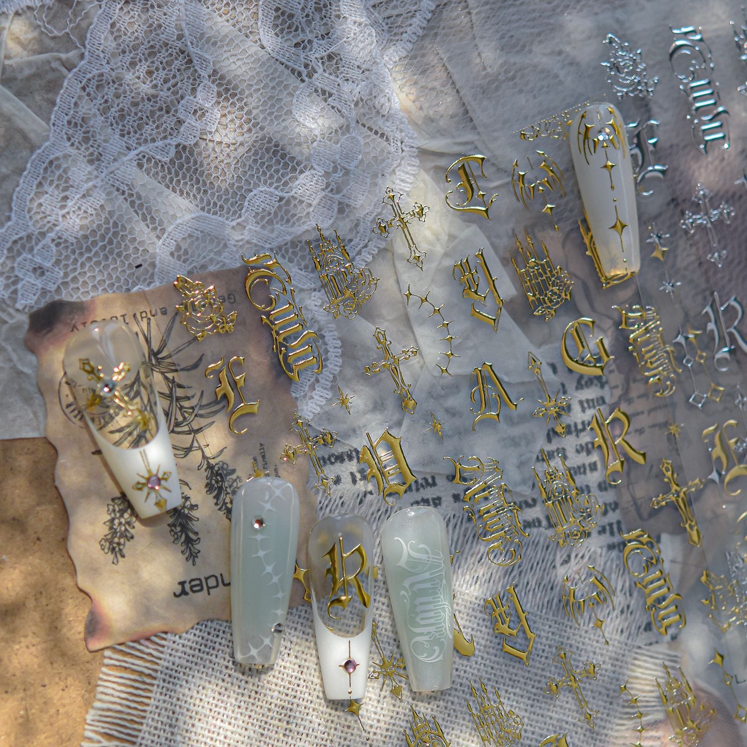 3D Stickers - Metallic Sheen Cross Snake Skull Self-Adhesive Gothic Dark Romance Decals for Nail Art Decoration
