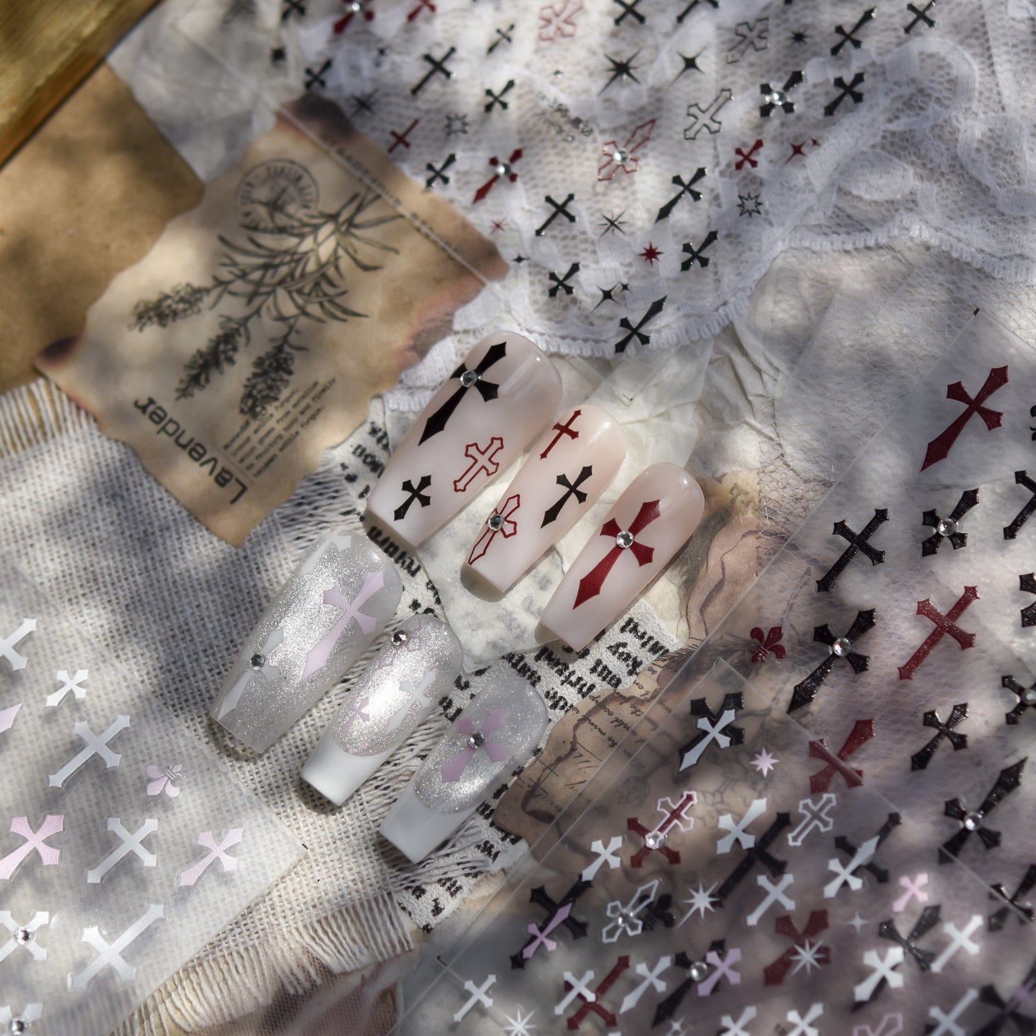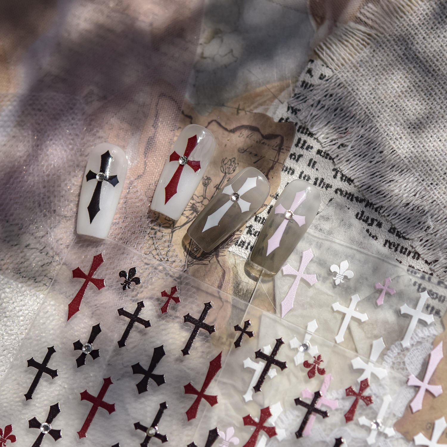 Stickers with Rhinestones - Pre-set Gems Cross Self-Adhesive Gothic Dark Romance Decals for Nail Art Decoration