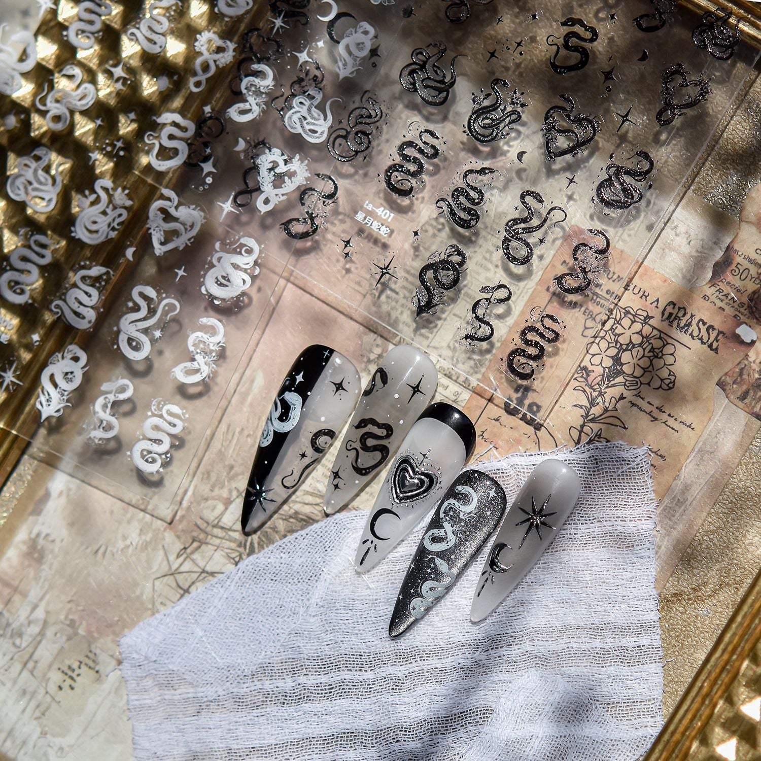 Ultra-Thin Stickers - Ultra-thin Cross Snake Skull Self-Adhesive Gothic Dark Romance Decals for Nail Art Decoration