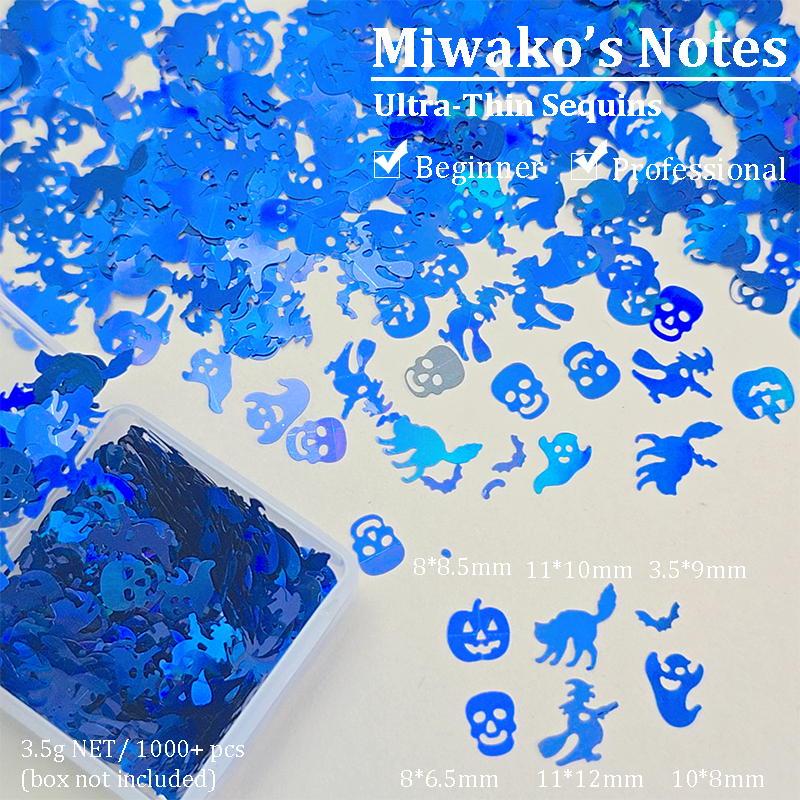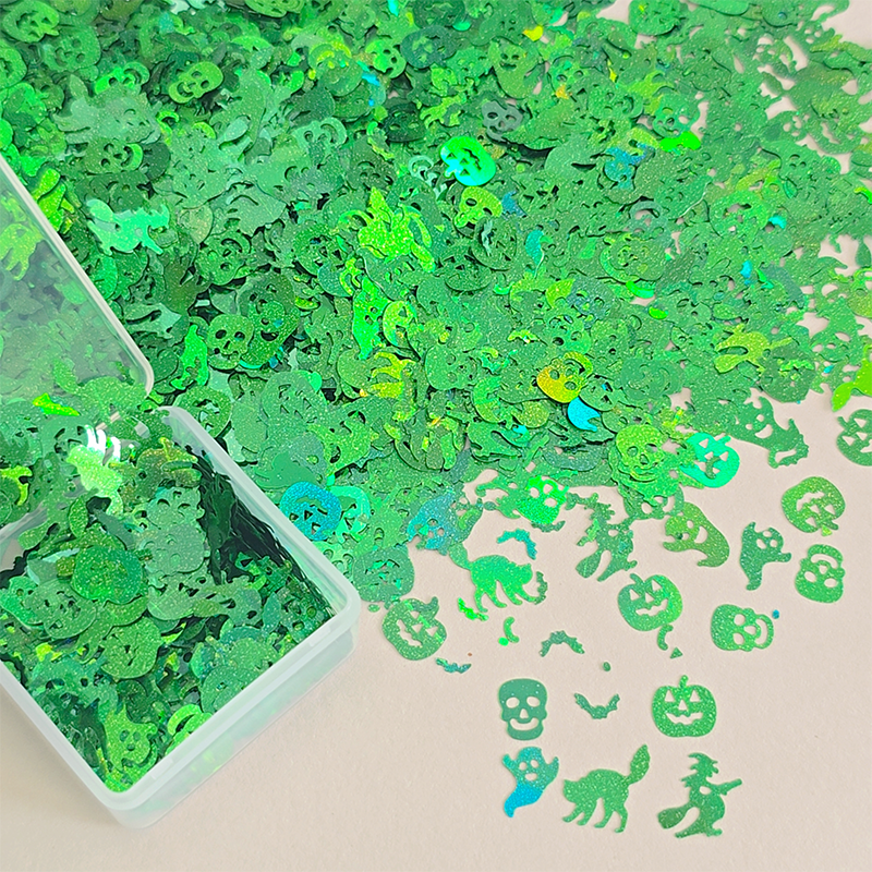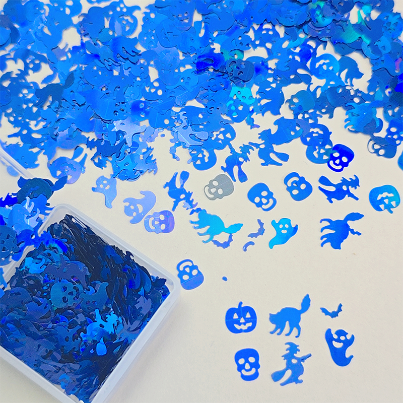 Halloween Sequins - Ultra-Thin Mix Skull Pumpkin Bat Ghost Cat Witch Design 3D Holographic Nail Art Glitter Supplies for Nails DIY Decorations